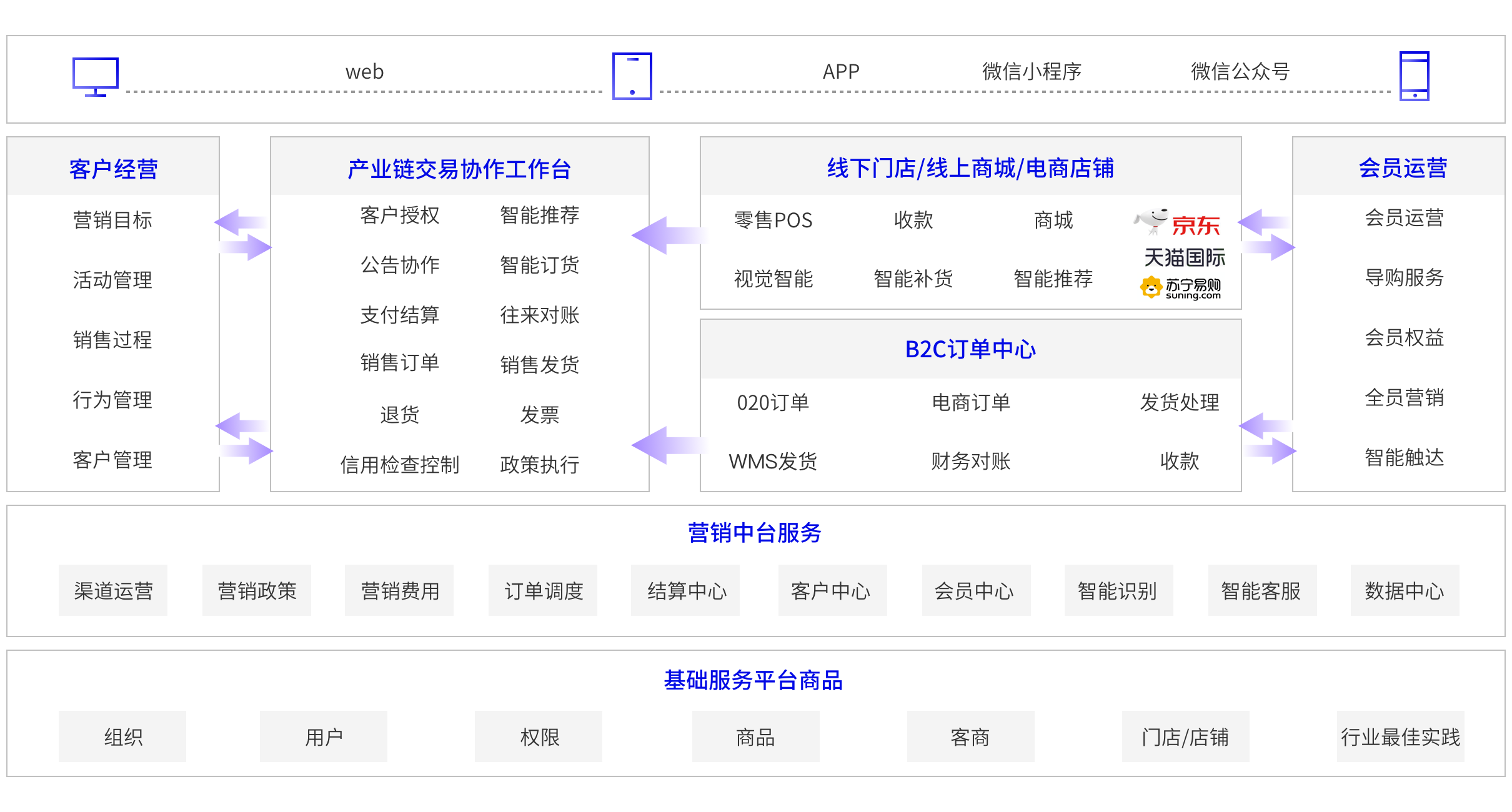 先進的(de)營銷中台,聚合營銷中台服務能(néng)力,賦能(né∏< ng)産業(yè)鏈複雜(zá)多(duō)變的(de)營銷業(yè)務場(•÷®chǎng)景。