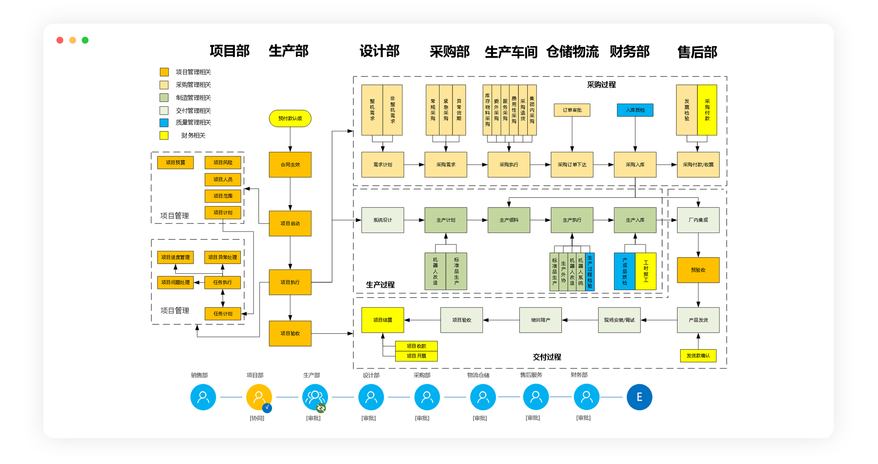 全面管理(lǐ)合同到(dào)收款的(de)全γ♥過程,從(cóng)項目部、生(shēng)産部、設計(jì)部、采購(β∑δ♣gòu)部、生(shēng)産車(chē)間(jiān)、倉儲物(☆≈©wù)流、财務部、售後服務部實現(xiàn)信息從(cóng)前端到(dào¥λ€)後端傳遞無斷點,數(shù)據前後端真實≥×₽、一(yī)緻、可(kě)追溯,将內(nèi)控制(zhìελ)度落實到(dào)各審批節點,滿足內(nèi)控合規要(y ±π ào)求。